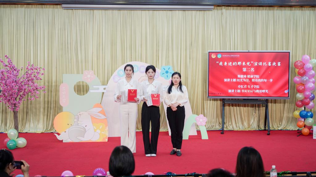 本次“我身边的那束光”演讲比赛不仅为同学们搭建了展示自我的平台,更在聆听与分享中,让正能量得以传递,激励着广大同学在今后的学习和生活里,主动去发现身边的美好,积极传递温暖与力量,共同营造积极向上的校园氛围。