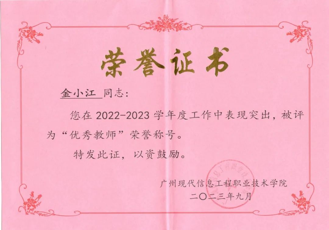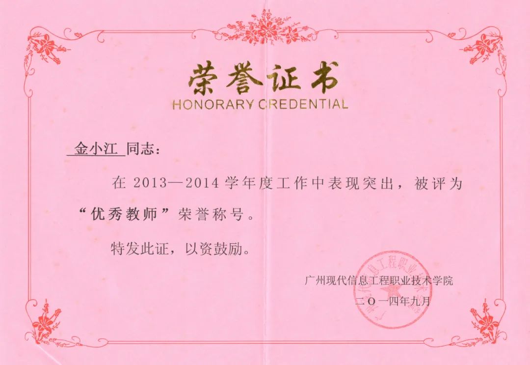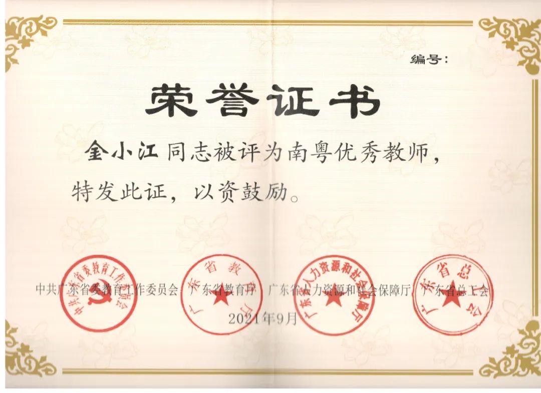 金小江老师总结的教学经验和研究成果,不仅解决了自己在教学工作中遇到的困难和问题,也受到广大同行的一致好评。