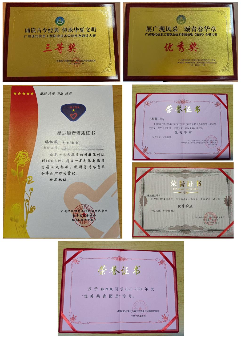 入学以来,林松殷同学在学习上始终脚踏实地,严格要求自己。除了学习专业知识,他积极参加各类学科竞赛,珍惜每一次提升自己的机会,荣获了学校2025年“团务知识竞赛”团体赛第一名、学校“诵读古今经典 传承华夏文明”经典诵读大赛三等奖、学校“微团课”比赛小组优秀奖等好成绩。
