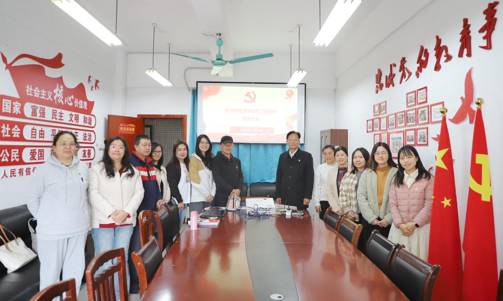 11月20日,我校经济与管理学院在第一教学楼1B504室开展“锚定纲要落地生根,发力教育提质增效”专题党课学习。本次党课由学校党委书记朱灿焕主讲,经济与管理学院教工党支部全体党员、入党积极分子参加学习。