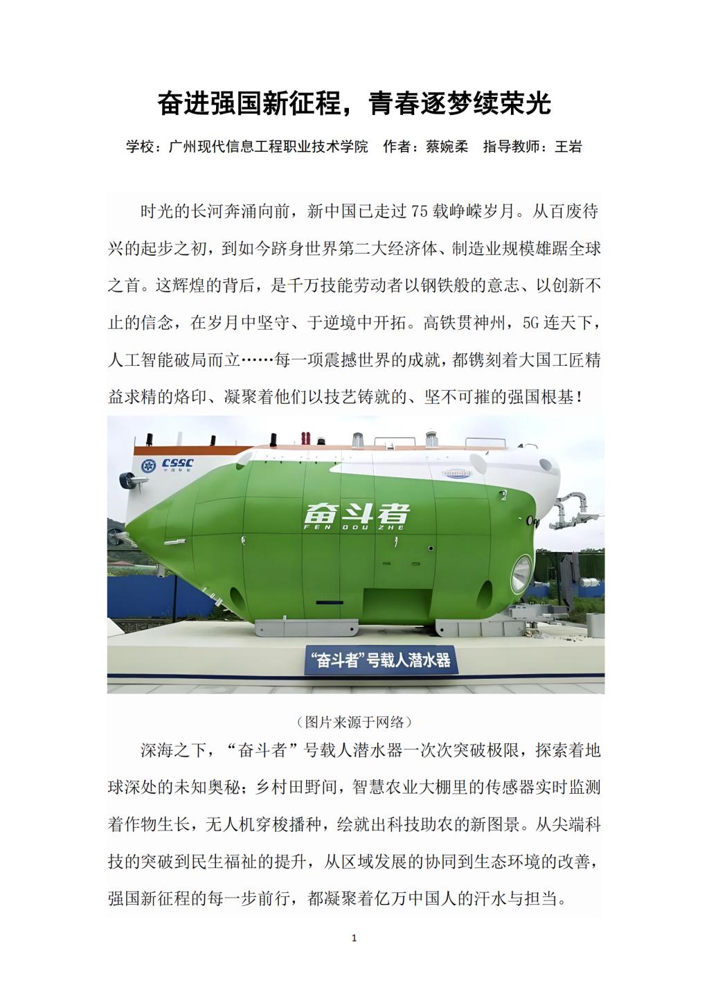 作品名称:《奋进强国新征程,青春逐梦续荣光》(网络文学)