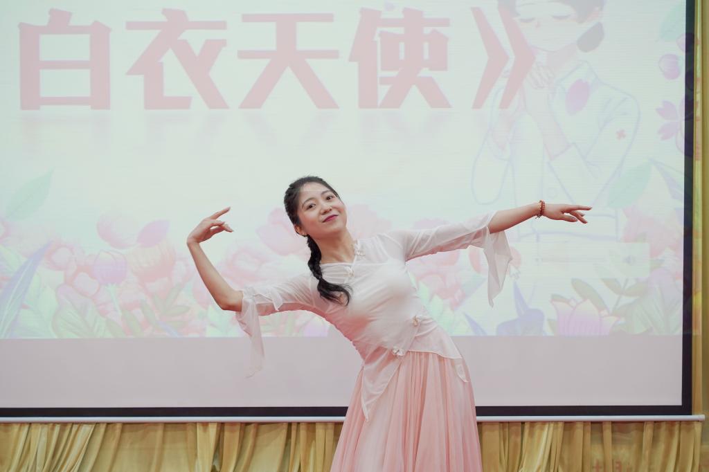 舞蹈《护光》璀璨上演。舞者们身着轻盈服饰,舞步灵动。健康学院的同学,舞台上是灵动的舞者,生活中是守护健康的天使。他们以舞为介,展现出护理人内心的爱与力量,为护士节增添别样光彩。